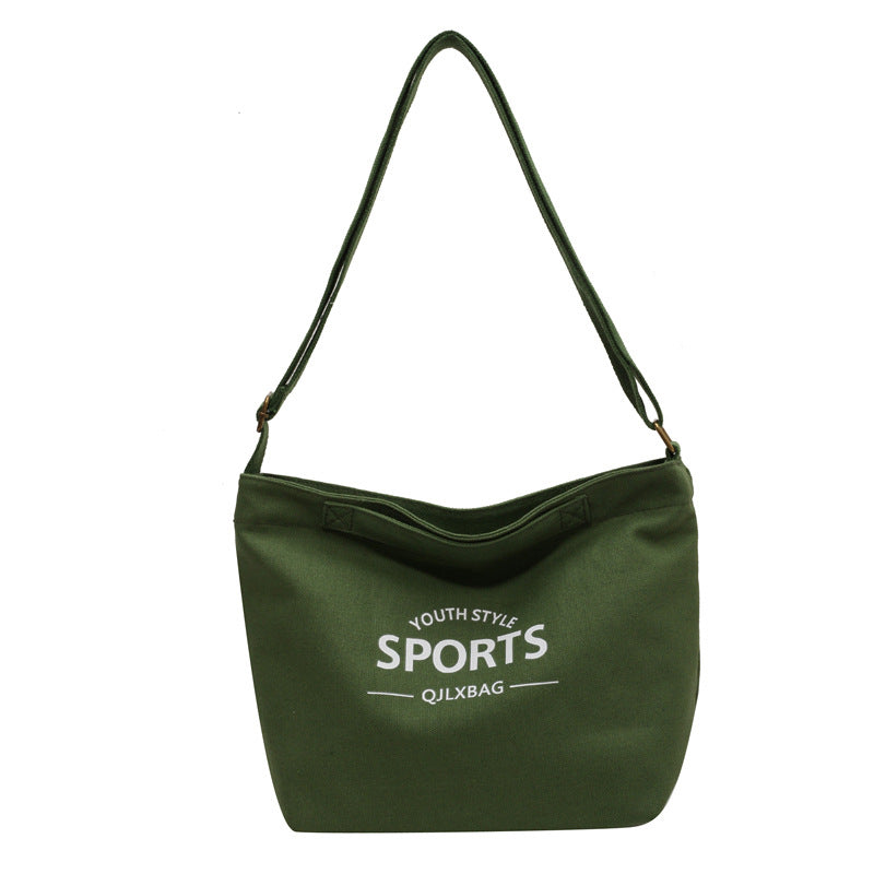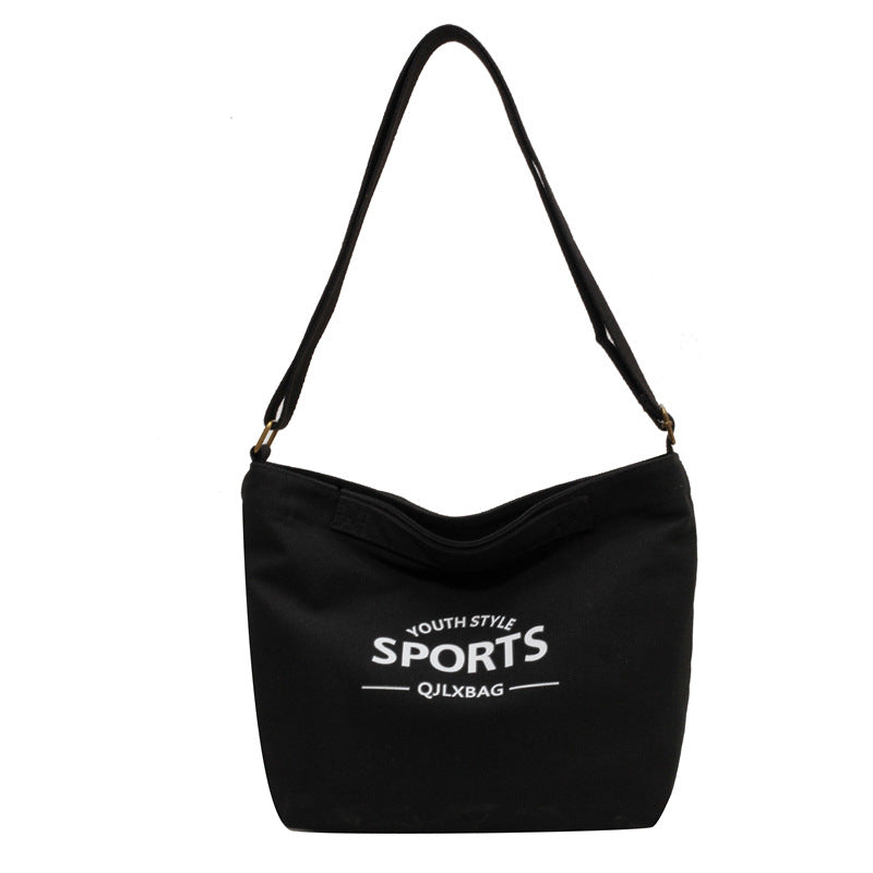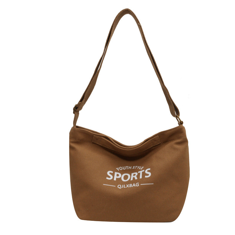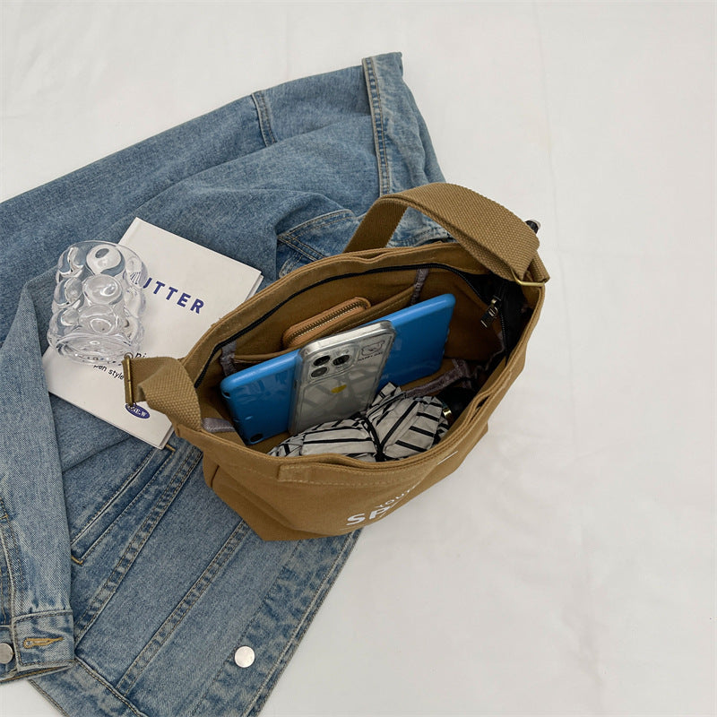 2025 new solid color letter printed canvas trendy and personalized daily simple women's bag shoulder bag crossbody bag vertical women's bag