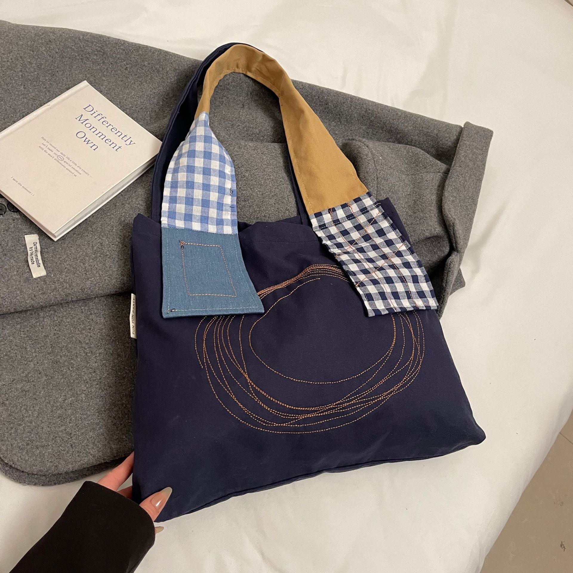 Autumn New Canvas Bag for Female Students Retro Splicing Shoulder Bag Japanese Large Capacity Shopping Bag Fashion Tote Bag