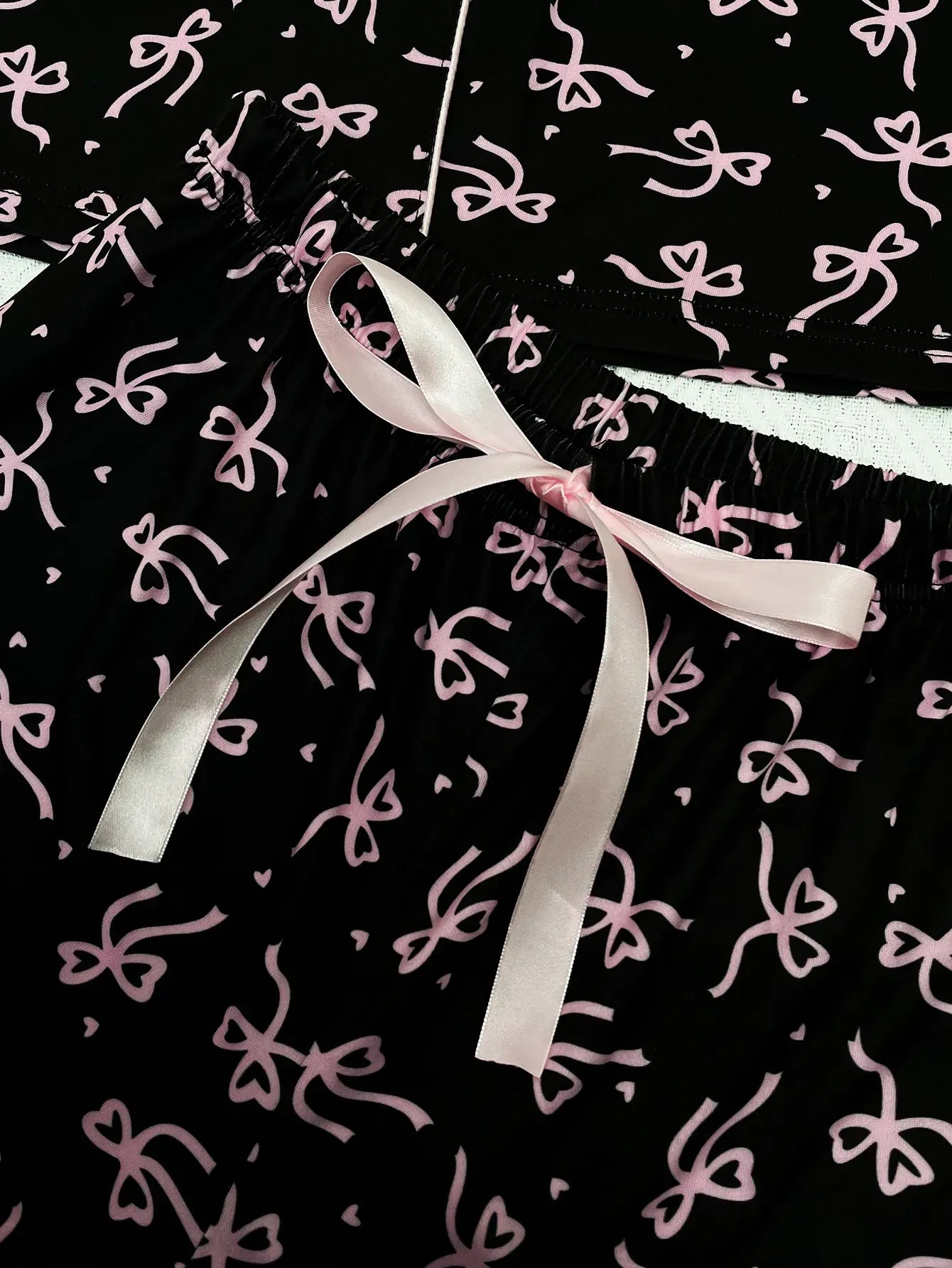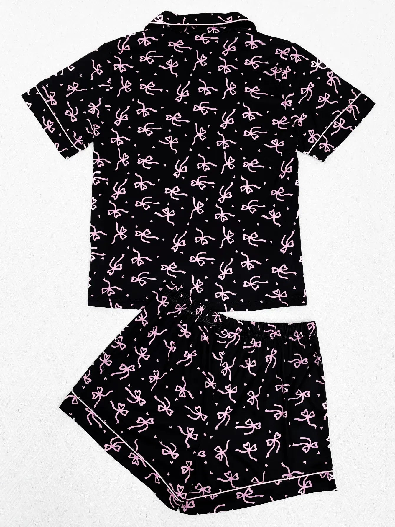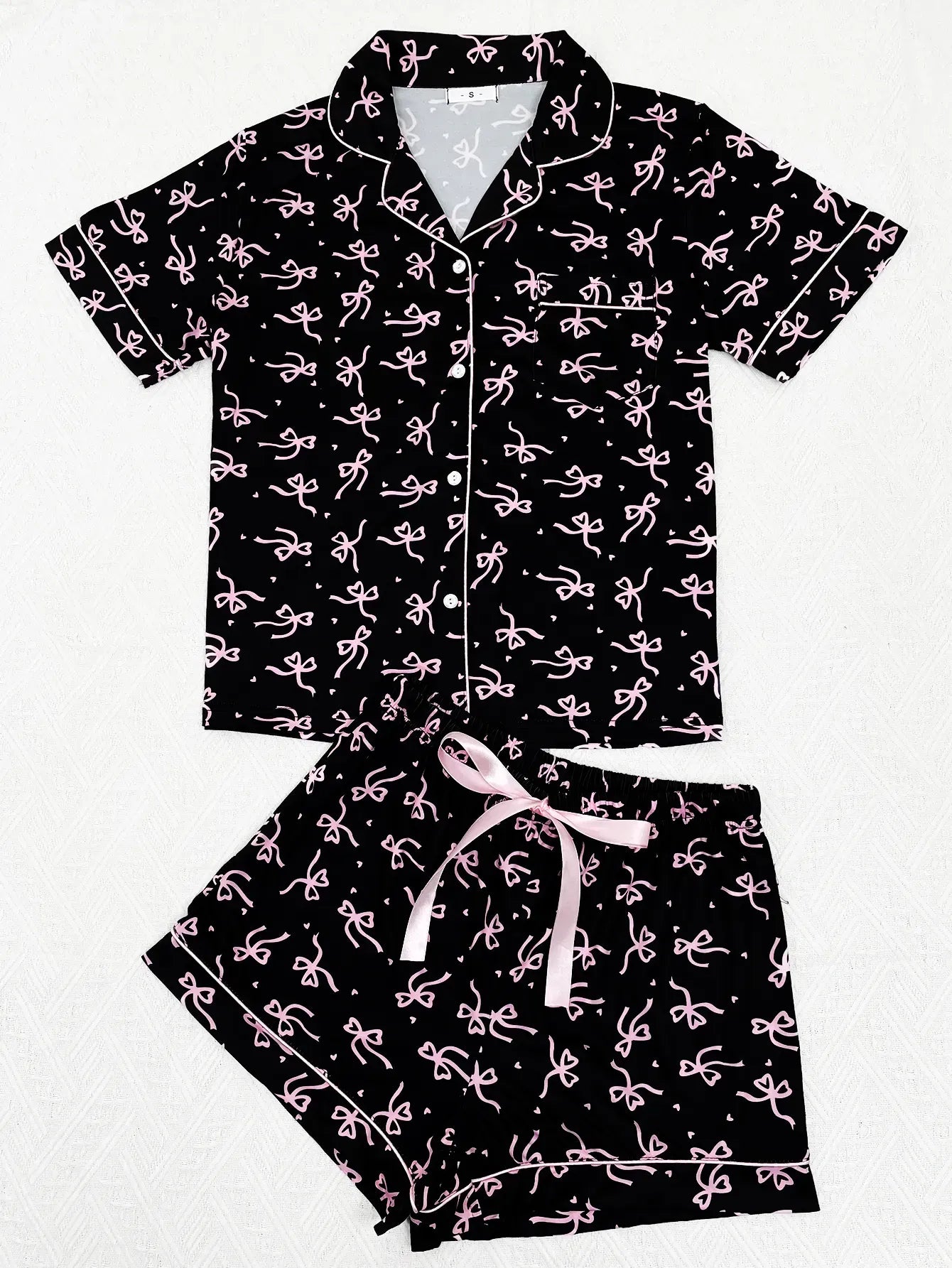 Cherry Print Women's Pajamas Set Turn Down Collar Top & Shorts 2 Pieces Sleepwear Elastic Nightwear Homewear Cloth for Summer