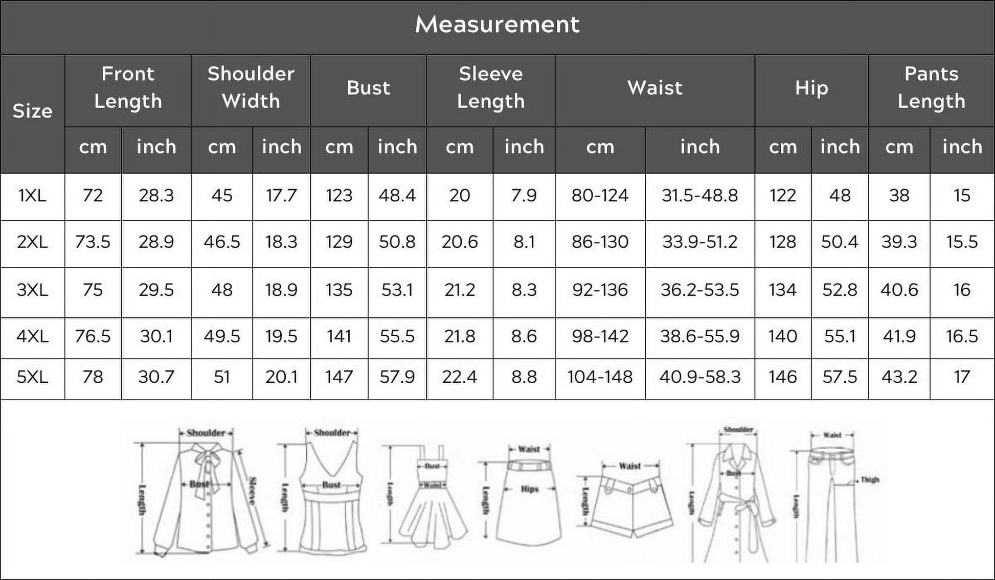 - Available in women's plus sizes ranging from 1XL to 5XL