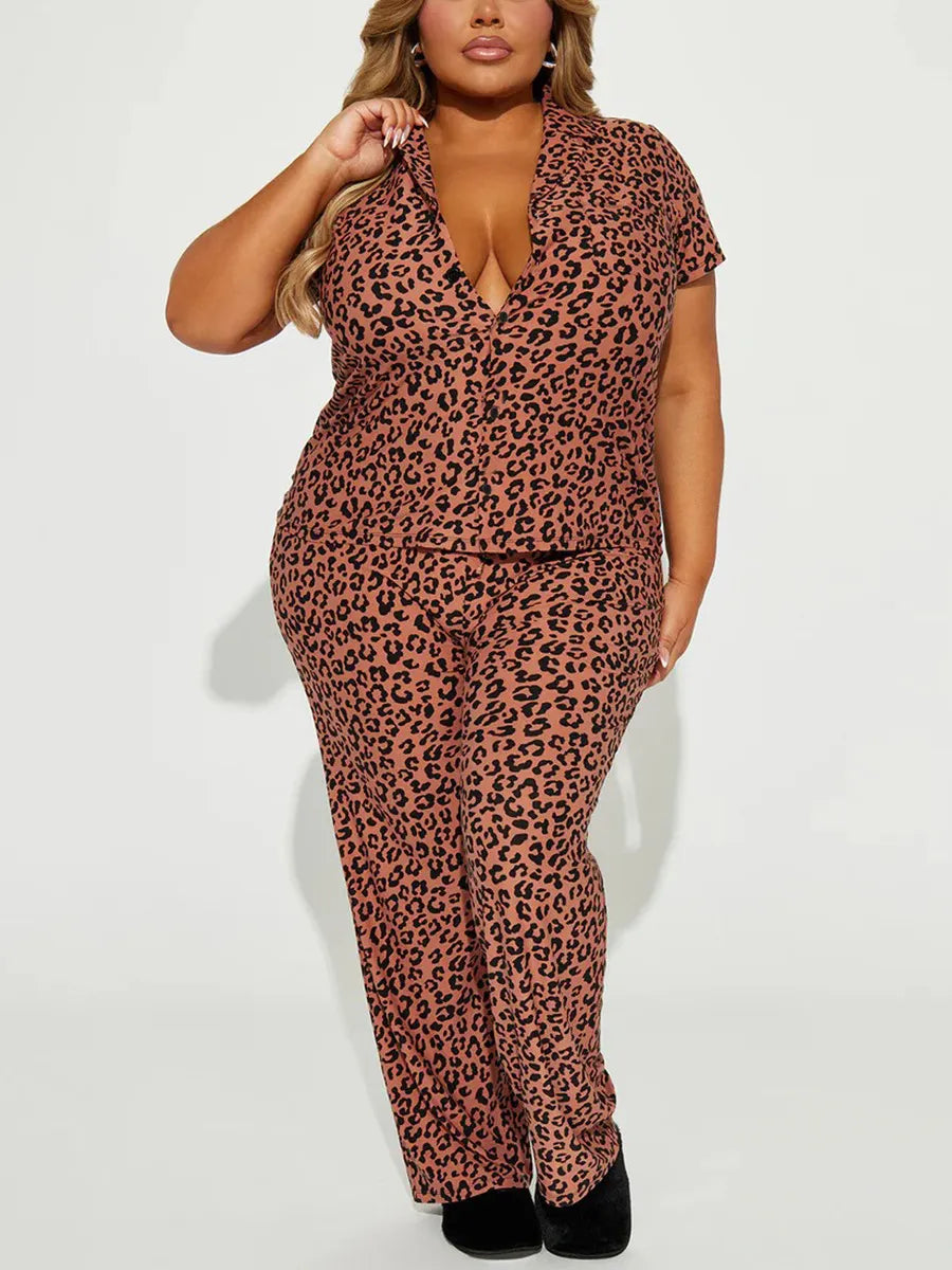Heart Print Women Pajamas Set Short Sleeve Front Button Tops & Long Pants Female 2 Pieces Notched Collor Sleepwear Nightwear