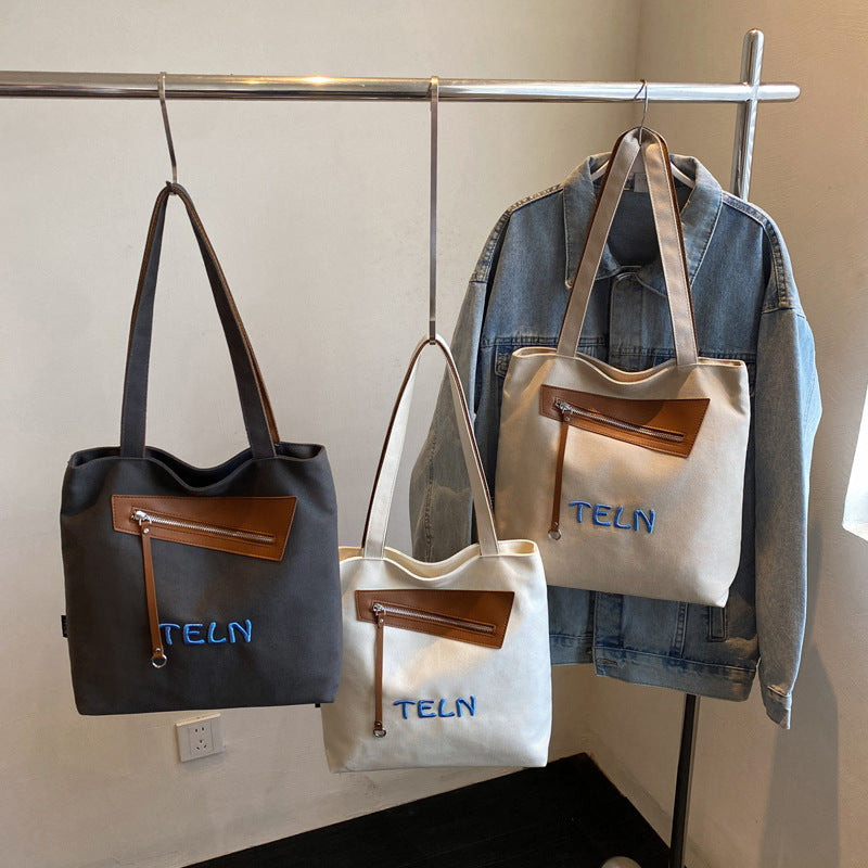 Korean casual college style canvas bag, women's seasonal new fashion tote bag, casual large capacity shoulder bag
