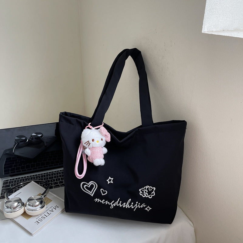 Large capacity bag for women's autumn and winter versatile 2025 new simple canvas shoulder shopping bag, student class tote bag