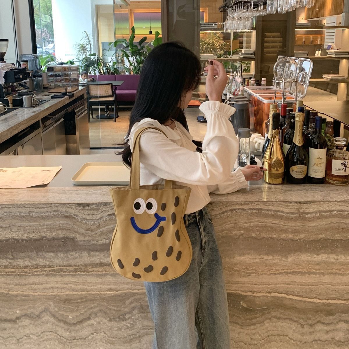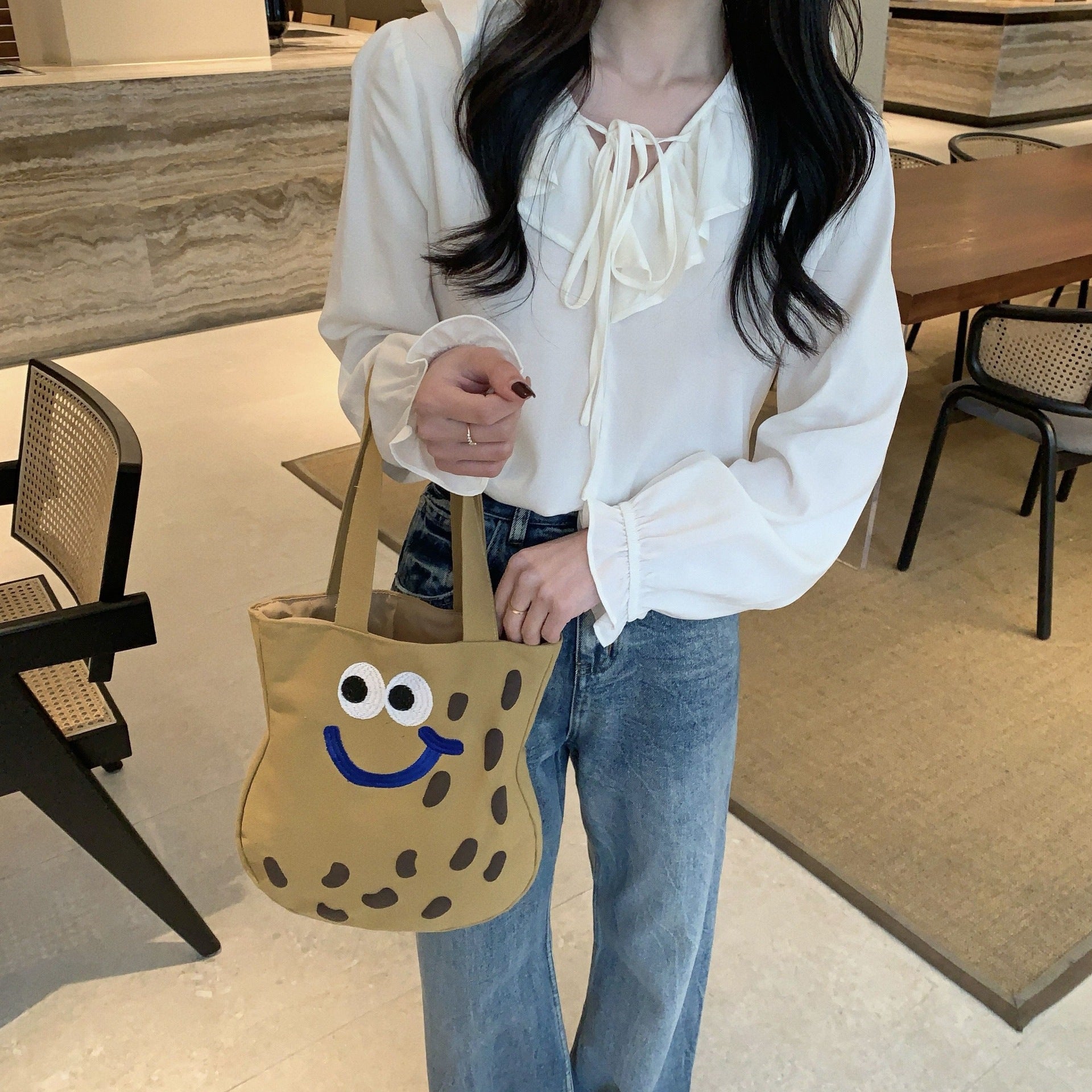 Large Capacity Handbag Original Versatile Bag Women's Cartoon Canvas Single Shoulder Embroidery Japanese Cute Art