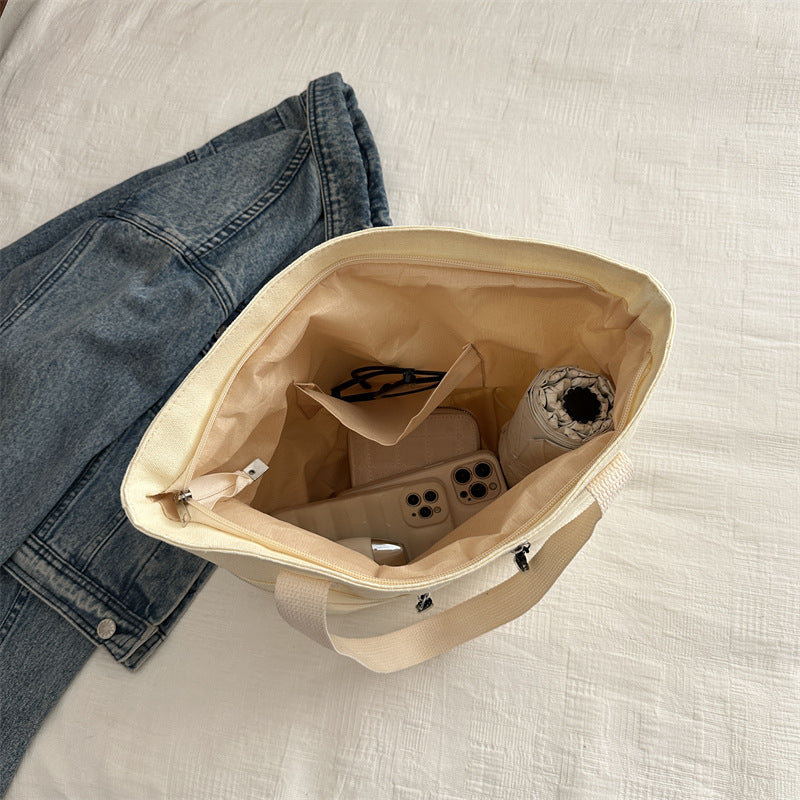 Lazy style large capacity handbag for women 2025 new simple casual canvas bag versatile single shoulder commuting tote bag