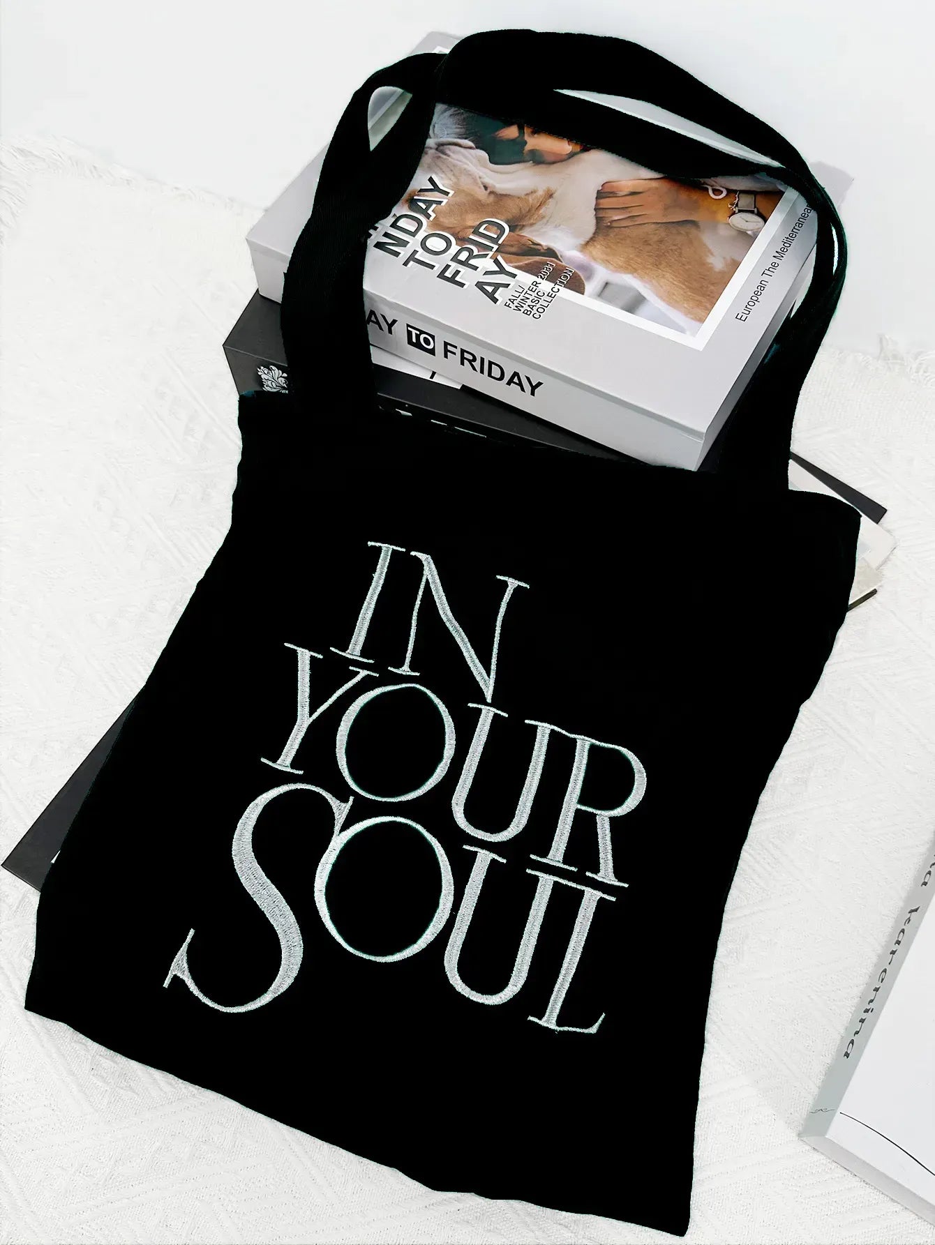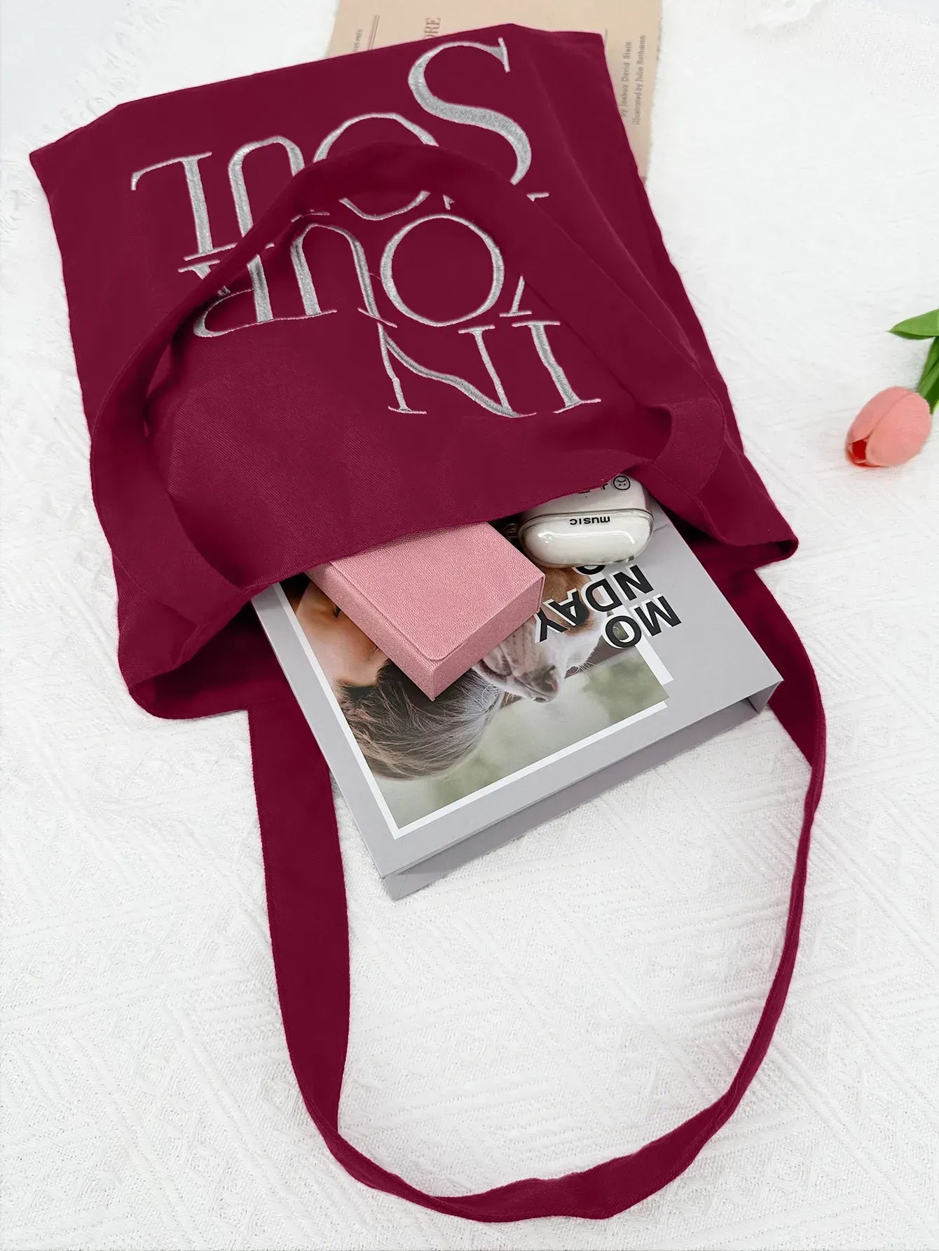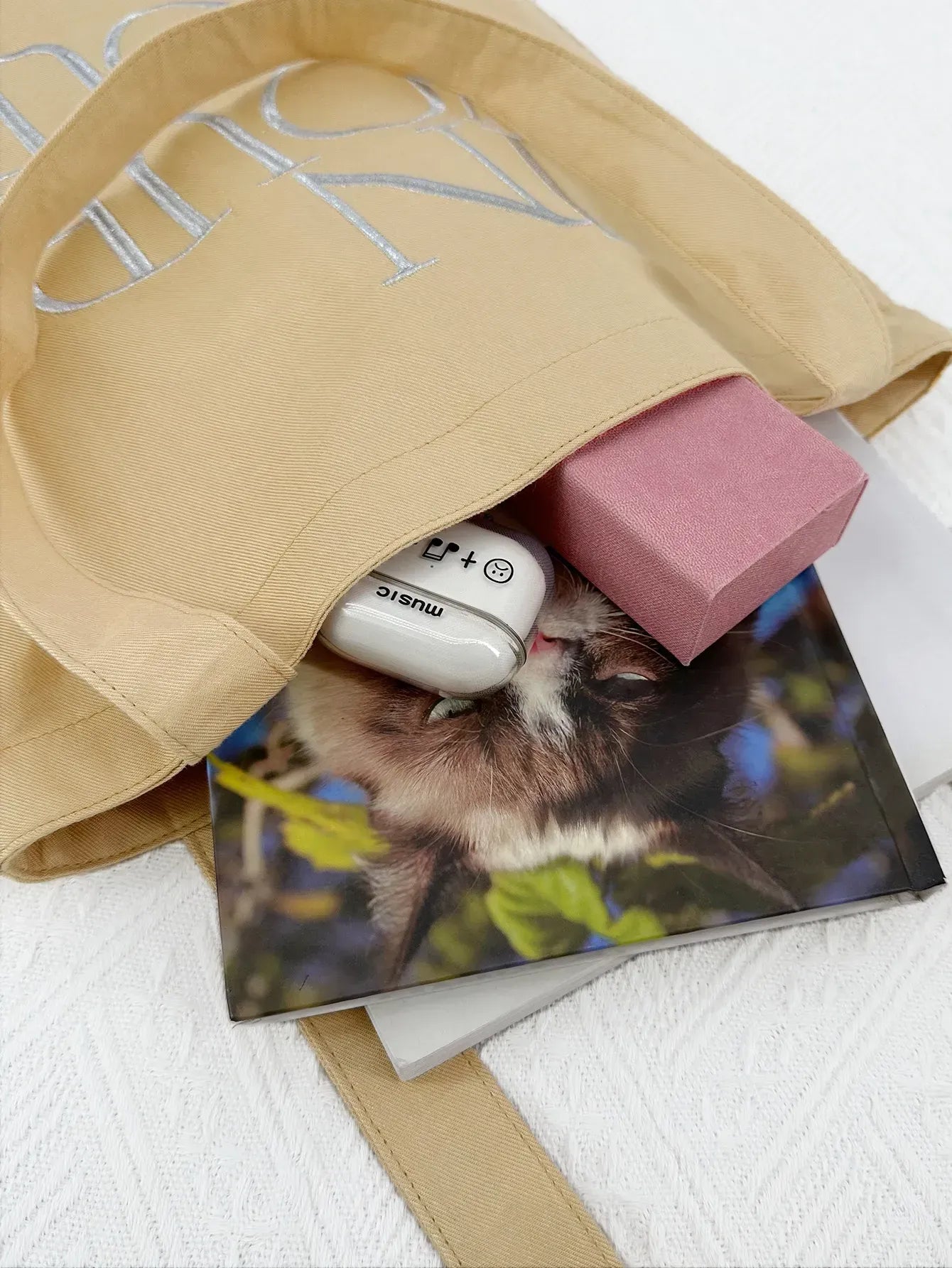 Letter Print Canvas Reusable Grocery Tote Bag Fenale Shoulder Handbag Crafts Shopping Bags Gifts for Women Birthday Christmas