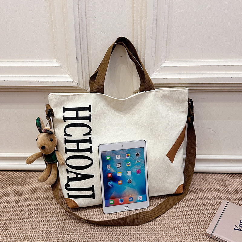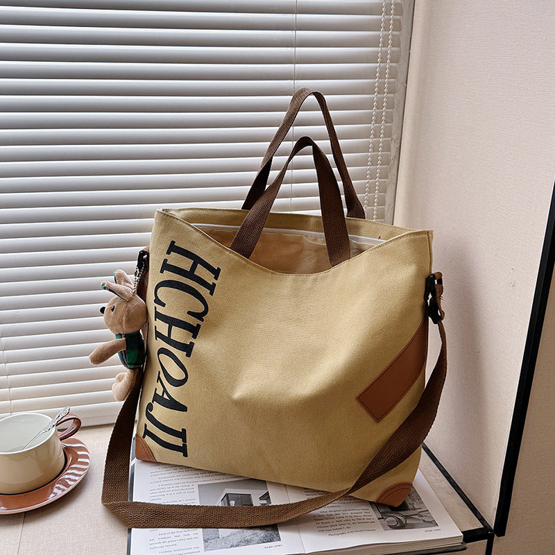 Outdoor canvas bag, women's high-end sense, large capacity tote bag, student class niche ins crossbody shoulder bag