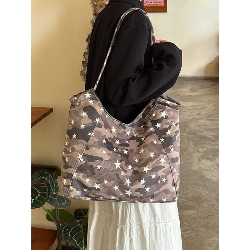 Retro Camouflage Tote Bag for Women 2025 New Large Capacity Commuter Shoulder Bag, Casual Versatile Canvas Bag