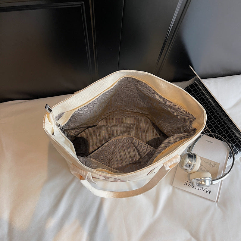 Simple and versatile trendy cartoon cat canvas bag for women 2025 new large capacity commuting hand-held shoulder tote bag
