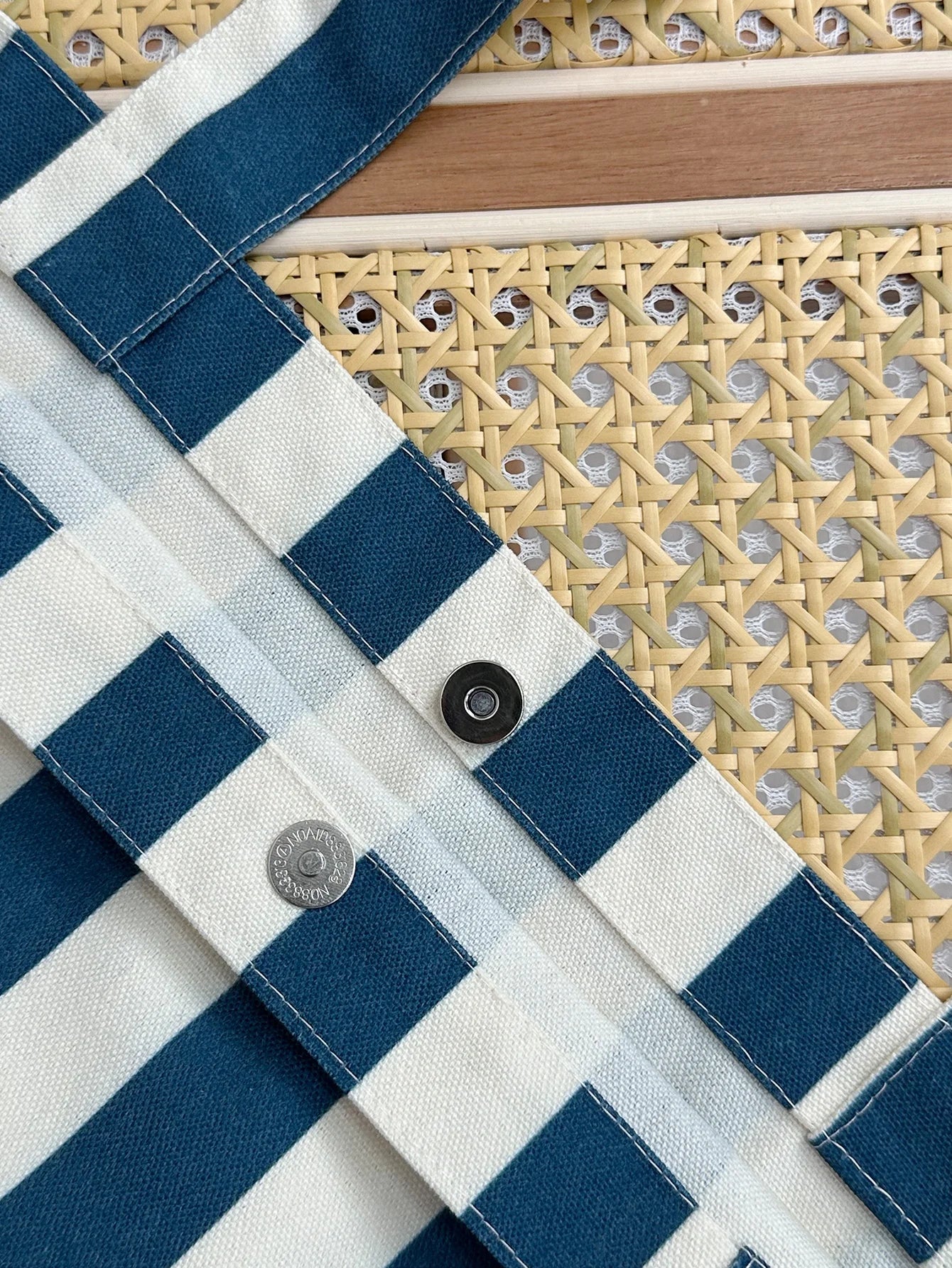 Striped Print Canvas Reusable Grocery Tote Bag Fenale Shoulder Handbag Crafts Shopping Bags Gifts for Women Birthday Christmas