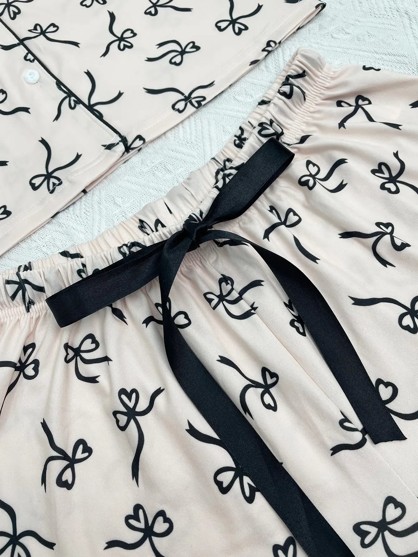 Summer Women's Pajamas Sets Short Sleeve Notched Collar Front Button Top & Elastic Waist Shorts Home Suit Loungewear Sleepwear
