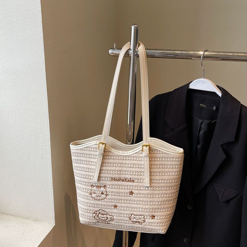 Woven bag, large capacity bag, women's 2025 new trendy beach shoulder bag, women's summer woven tote bag